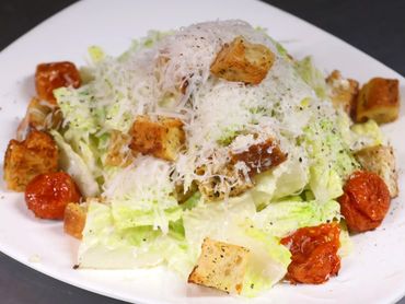 Classic salads with bold twists. Featured in the images above are our caesar salad, port pear with balsamic vinaigrette salad, and arugula with chèvre cheese salad.